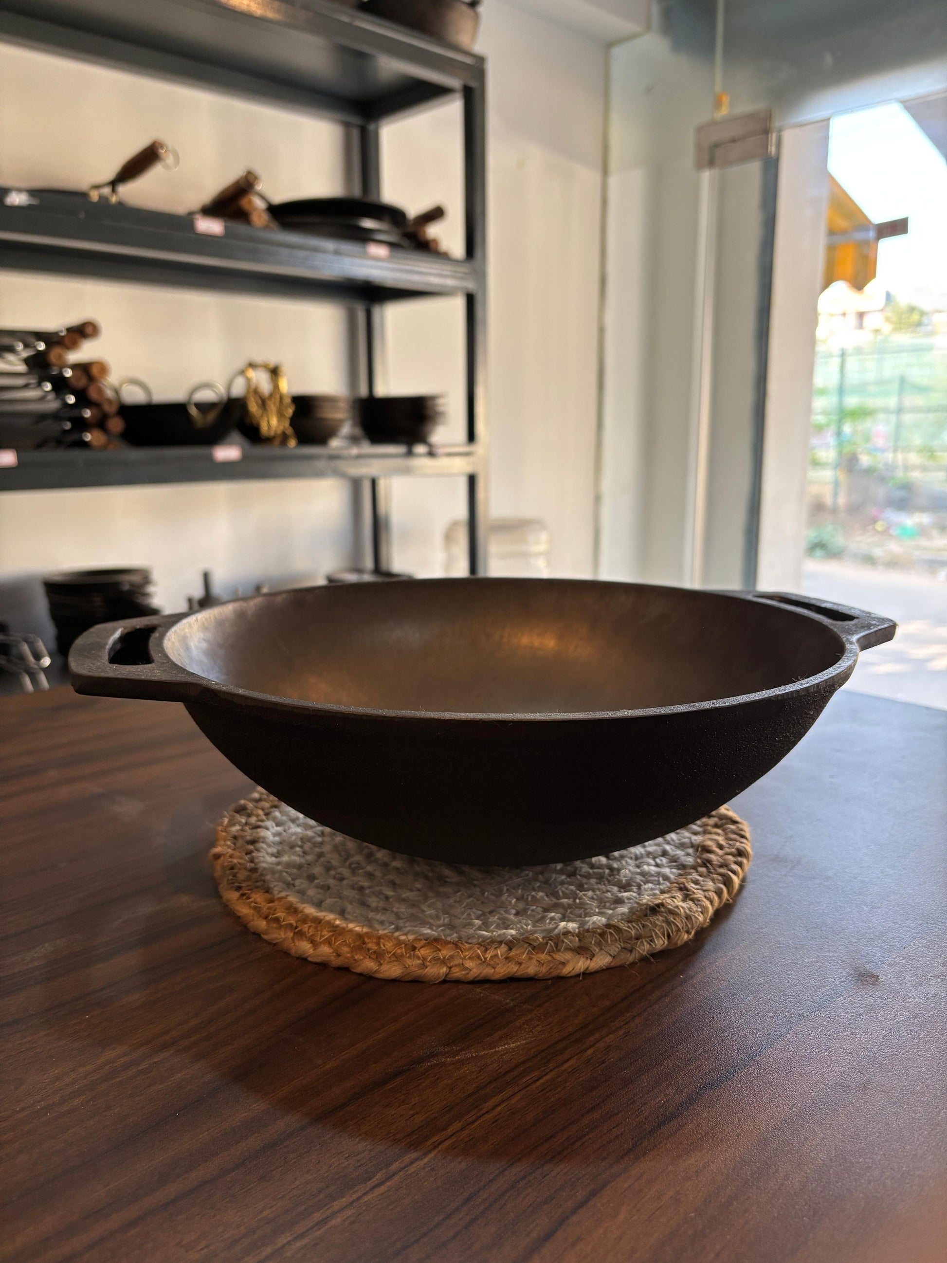 Season (if not pre-seasoned): Rub a thin layer of vegetable oil over the entire surface. Heat the cookware and cut an onion and fry them for about 7-10 mins, dis card the onion and the cookware is ready to use.